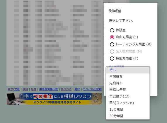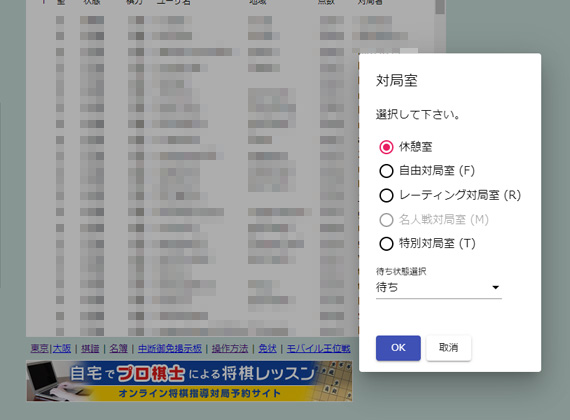 - 将棋盤を閉じると、直通設定はリセットされる。再度将棋盤を開いたときはだれも選択していない状態になる。