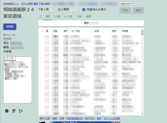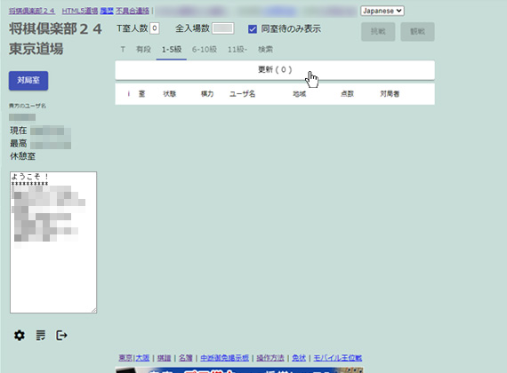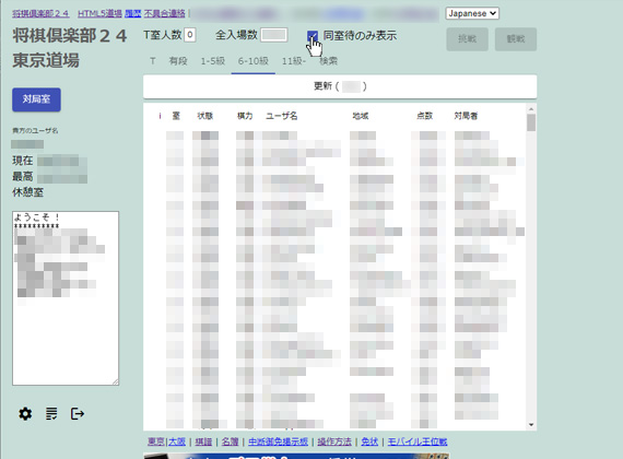 :入場者リストの表示非表示切り替え。入場者リスト非表示で将棋盤を閉じると、入場者リストが表示される。一度切り替えたらその設定がブラウザに保存される。