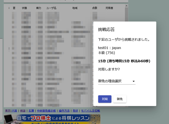 - 指定R点差、希望持ち時間、ゲストアカウントか否かによって、自動的に挑戦拒否ができる