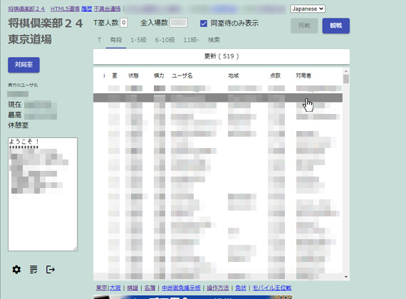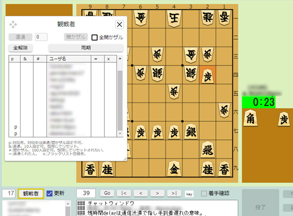 観戦者リストとは将棋盤左下にある観戦者のリストのこと。 - 押すまでは、たとえ観戦者リストが増減しても、本表には反映されない。