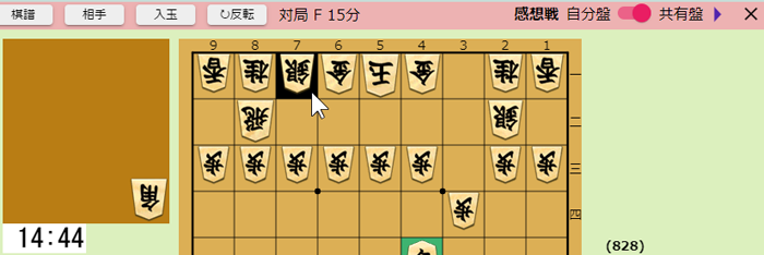 - 対局終了後、自動的に感想戦(共有盤)に移行します。