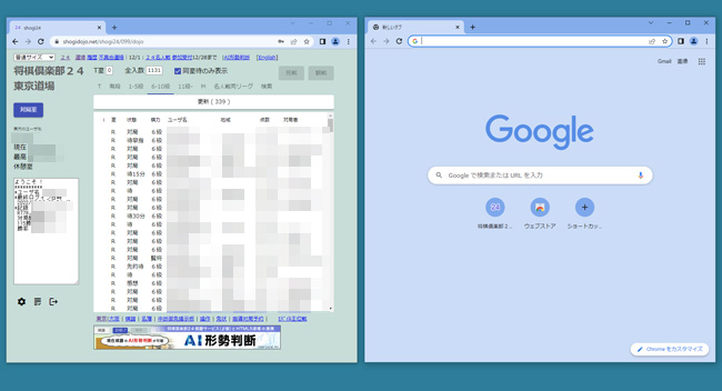 観戦や対局待ちしながら別タブで作業をする